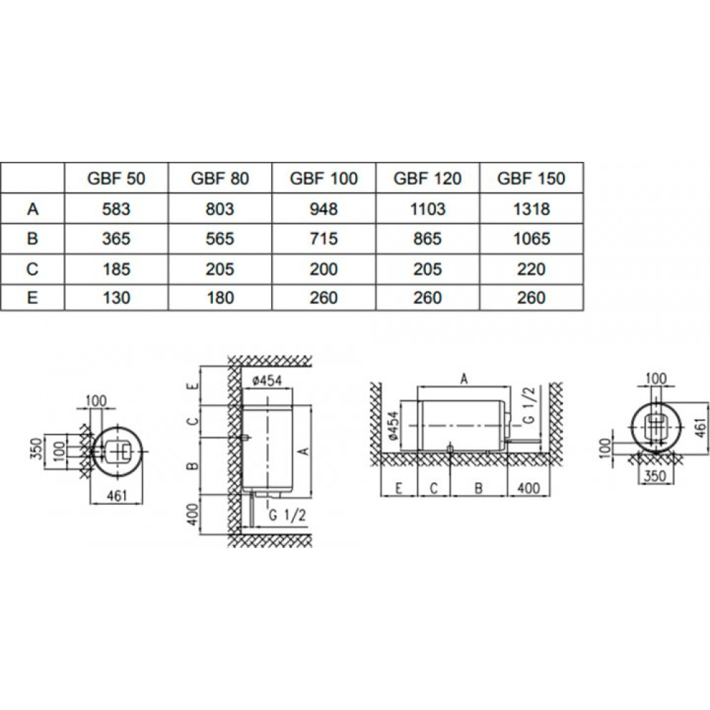 Водонагрівач класичної циліндричної форми (глибина з кріпленням 461 мм, ширина 454 мм, висота 974 мм) - дозволяє розумно використовувати простір, легко монтуються в ніші та вписуються в найвишуканіші дизайнерські інтер'єри