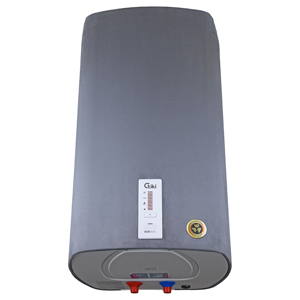TIKI OGBS 50 E5 Supr SD 50V9 - електричний накопичувальний водонагрівач (колір Темно-сіра Алькантара) з фактичним об'ємом емальованого бака 48.3 літри та двома "сухими" ТЕНами, загальною потужністю 2 кВт. Монтаж бойлера настінний, вертикальний.